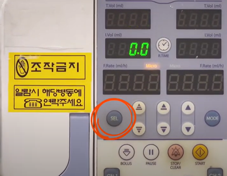 remain time을 두번 누르면 주입완료까지 남은 시간 표시됨
