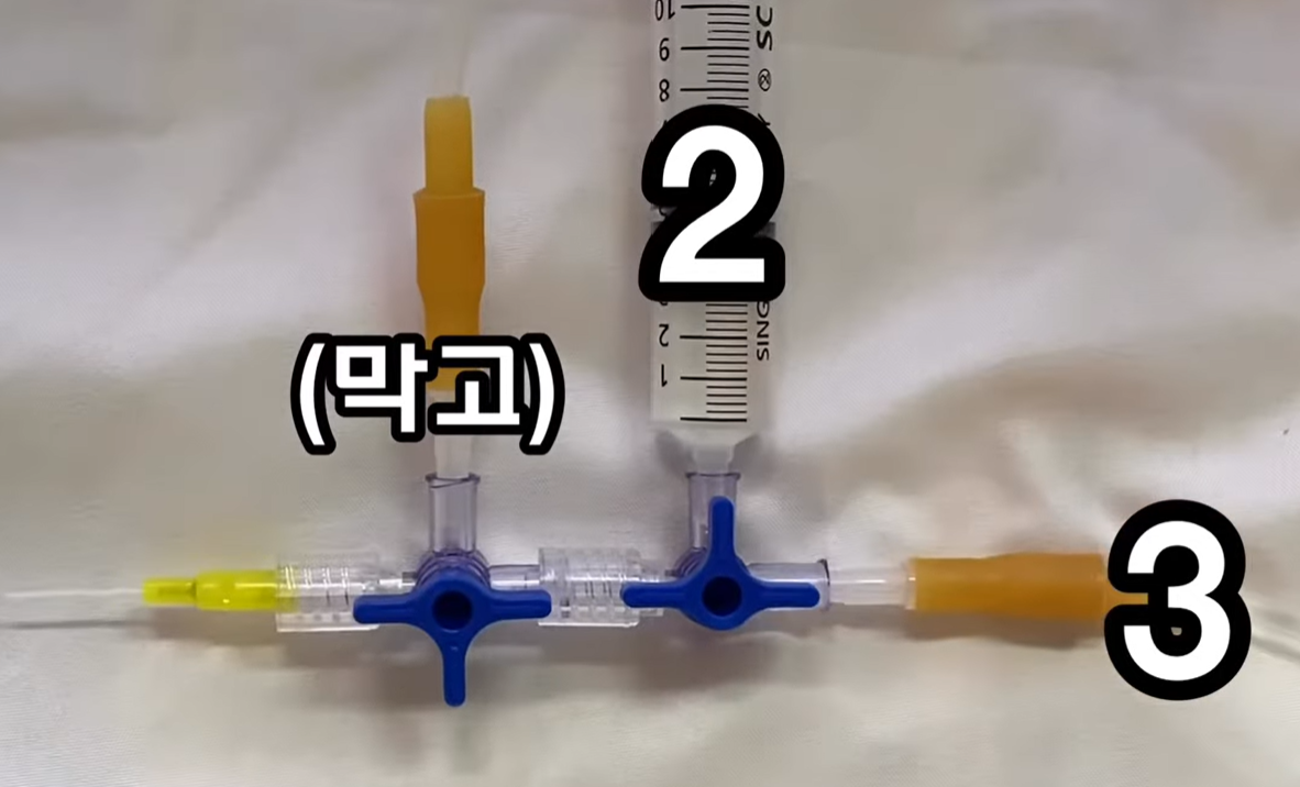 3 way 2개 = 직선이라서 윗쪽으로 나있는 길에만 수액 추가 따라서 하나씩 추가 가능!